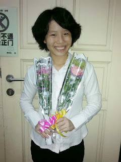开心吗?:DD 这天买了两支玫瑰花给秀秀和颖恩。